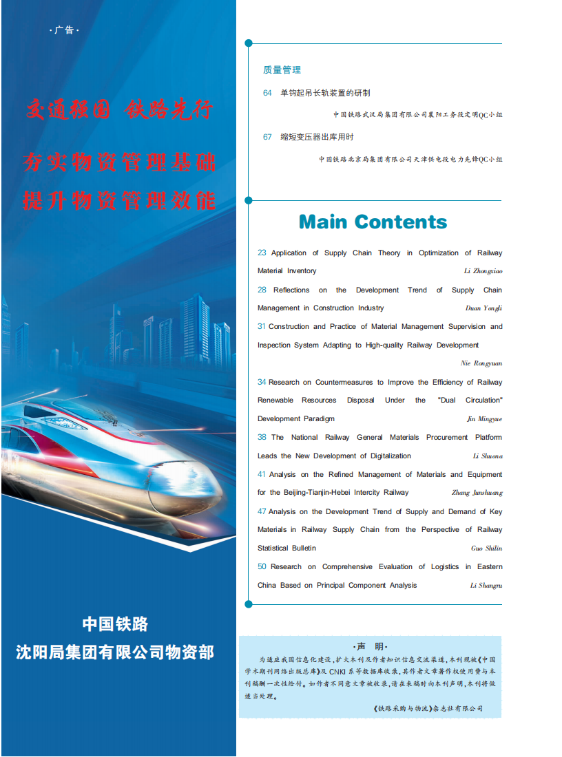 《铁路采购与物流》2022年03月 总第186期